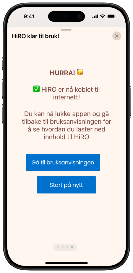 Hvis du har kommet til dette steget så er HiRO koblet på internett.
